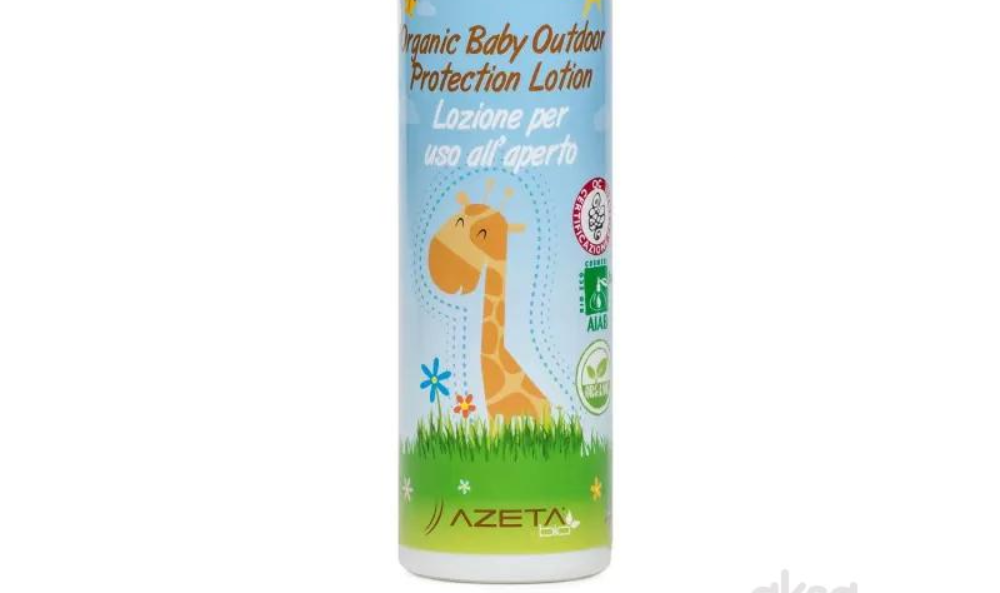 Losion za zaštitu na otvorenom je emulzija na bazi biljaka zasnovana na aktivnim komponentama kao što su Andiroba ulje i eterična ulja (geranijum i lavanda), koja štite kožu od dosadnih, neprijatnih i ponekad iritantnih krpelja i drugih insekata. Nanesite dva ili više puta dnevno na delove tela koji nisu pokriveni garderobom. Masirajte dok se potpuno ne upije. Azeta Bio je italjanska organska sertifikovana kozmetika za bebe, decu i trudnice. Svi proizvodi su bezbedni za korišćenje od rođenja. Sastojci su organski, prirodni, veganski, bez pesticida, parabena, sulfata, glutena.